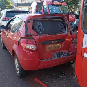 Uma idosa, de 66 anos, passageira do Ford Ka, foi socorrida por uma equipe do Corpo de Bombeiros e encaminhada à UPA com ferimentos considerados leves.
