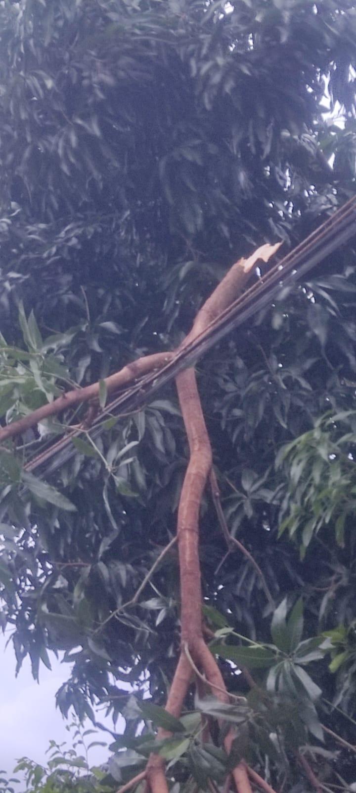 Na manhã deste domingo, galhos caíram sobre a fiação na Avenida Santo Cristo, nas proximidades do Posto Shell. Um morador registrou as imagens e encaminhou à reportagem.