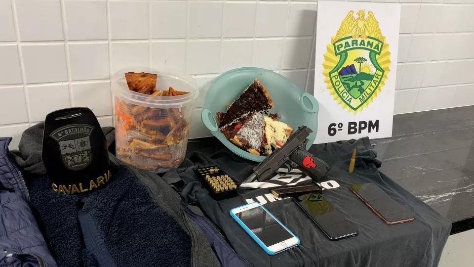 Na sequência, os militares conseguiram localizar os autores do assalto e outros dois indivíduos a uma quadra do local do crime, na casa que seria do primo de um dos autores do assalto. Com os suspeitos foram encontradas uma pistola calibre 9 milímetros e parte das pizzas roubadas.