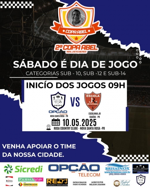 Neste sábado, dia 10 de maio, Nova Santa Rosa será palco da estreia em casa da equipe do Projeto Esportivo Social Preparando Gerações/Opção Telecom, que representa o município na Copa Abel 2025. O confronto é válido pela segunda rodada da competição.