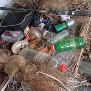 Foram encontrados vários matérias de pesca no acampamento e foram destruídos juntos com acampamento.