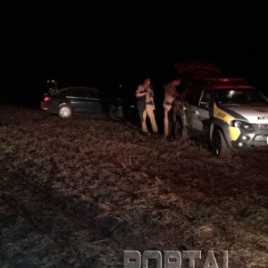 Logo a frente o condutor do Jetta acabou perdendo o controle da direção do mesmo e adentrou meio a plantação com o veiculo, ao tentar fugir correr, ele foi rendido pela equipe e preso.