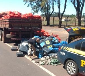 A Polícia Rodoviária Federal (PRF) apreendeu 2.167 quilos de maconha neste sábado (25) em Ubiratã, na região Centro-Oeste do Paraná, a 545 quilômetros de Curitiba. Acondicionada em quase 2,5 mil tabletes, a droga estava escondida sob sacos de cebola, na carroceria de um caminhão com placas de Foz do Iguaçu.