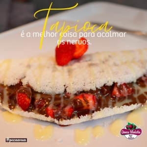 São várias opções em caldos, tapiocas recheadas doces e salgadas, sanduiche e cafés.