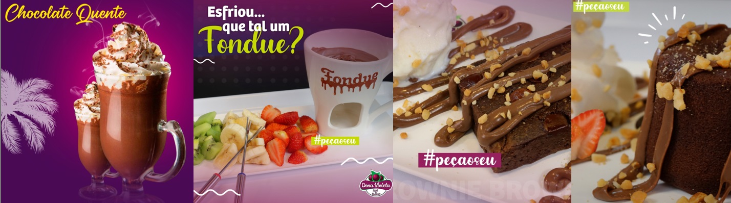 E claro que a equipe da Dona Violeta não esqueceu do chocolate quente e da fondue! Além disso, já experimentou o brownie e o petit gateau?