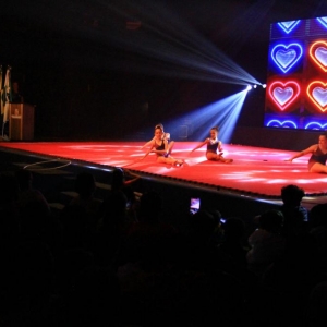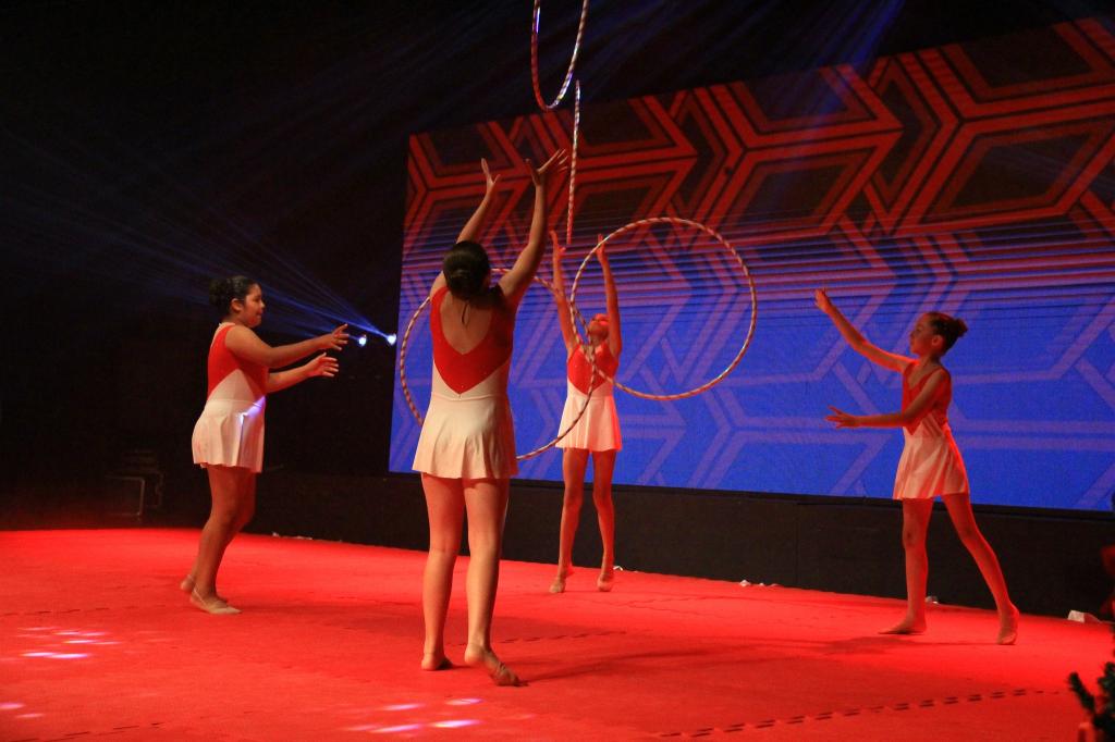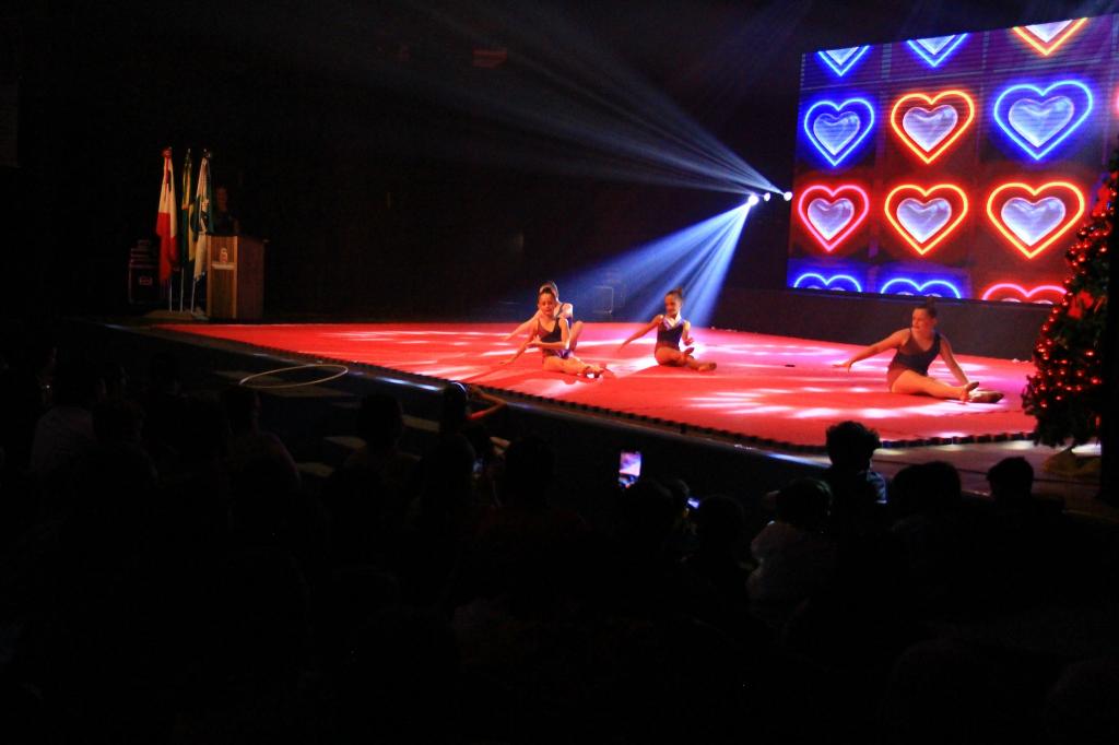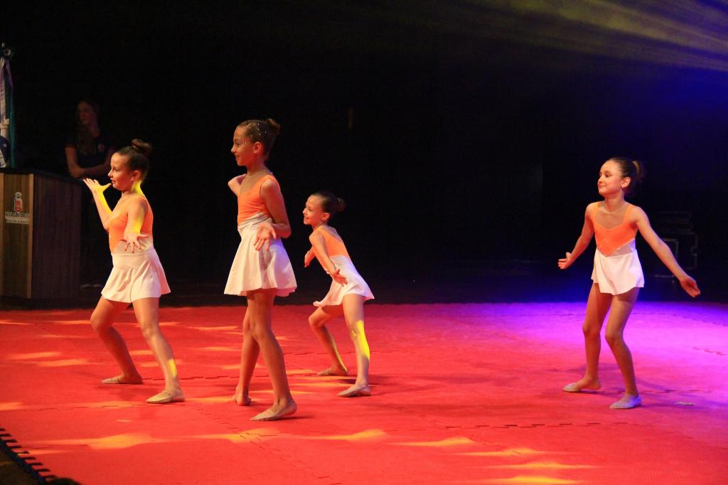 Foram apresentadas 28 coreografias inspiradas nas trilhas sonoras dos filmes Sing 1 e Sing 2, dentro do tema “O Show da Vida”. Cada apresentação destacou o trabalho artístico e técnico desenvolvido ao longo do ano pelas cerca de 180 alunas do projeto municipal de Ginástica Rítmica, coordenado pela técnica Quessila Zago e pela professora Thays Baungart, em uma proposta que une formação lúdica e competitiva.