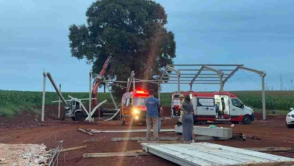 Um acidente de trabalho deixou quatro trabalhadores feridos após o desabamento de uma estrutura em uma obra às margens da PR-486, no distrito de Espigão Azul, em Cascavel. A situação mobilizou equipes de socorro.