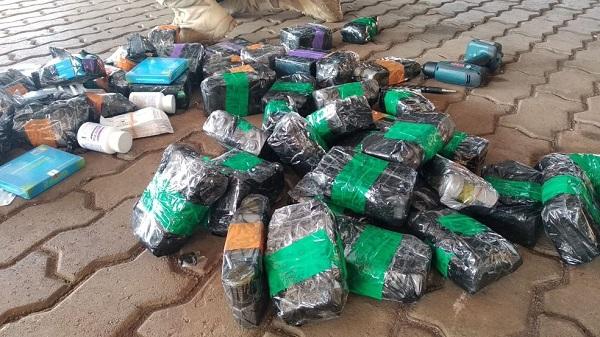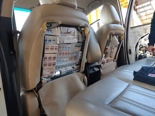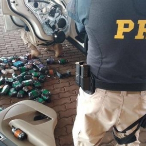Durante a inspeção foram localizados nas portas do veículo anabolizantes, medicamentos ilegais e dois pacotes com cocaína. O contrabando seria entregue em Maringá.