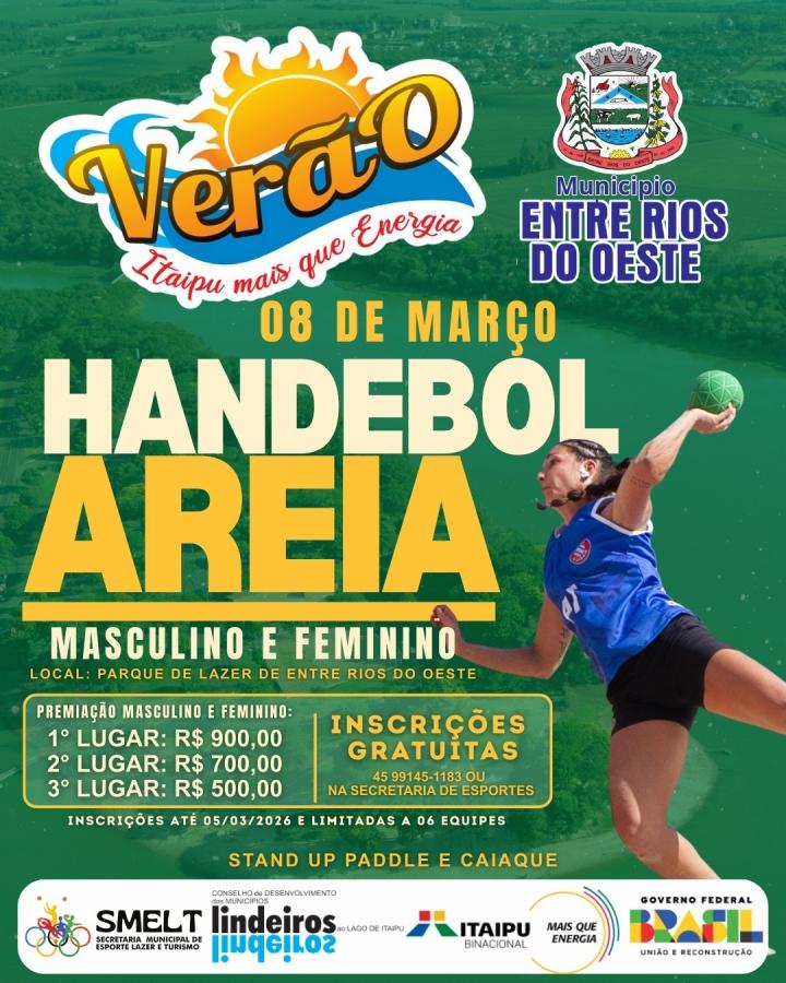 O município de Entre Rios do Oeste se prepara para sediar a etapa Verão Itaipu Mais que Energia 2026, um evento esportivo que ocorrerá nos dias 07 e 08 de março, no Parque de Lazer (praia artificial). A programação contará com três modalidades esportivas: Vôlei de Areia, Handebol de Areia e Beach Tennis, todas nas categorias masculina e feminina. Essa é uma excelente oportunidade para os atletas locais e visitantes mostrarem suas habilidades e competirem por prêmios atrativos.