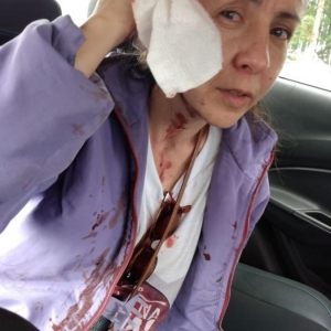 A professora Ronaime teria sido ferida por um tiro de bala de borracha na região da cabeça e precisou ser encaminhada para atendimento médico.