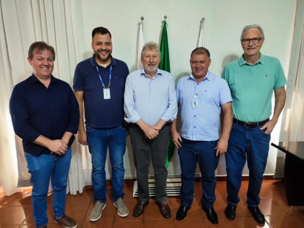 Participaram da reunião o prefeito Lari Hitz, o secretário de Finanças Jairon Arndt e o diretor Ademar Borghetti, e o coordenador de planejamento da Sanepar, Helton Guedes.