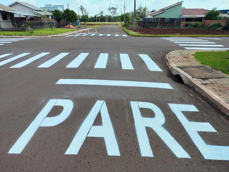 Pela primeira vez desde sua implantação, o Bairro Independência, em Nova Santa Rosa, passa a contar com sinalização viária. Estão sendo realizadas pinturas de faixas de pedestre e de pare em diferentes pontos do bairro, garantindo mais segurança para pedestres e motoristas.