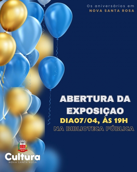 O Departamento de Cultura promoverá na noite desta segunda-feira (07), a partir das 19h, na Biblioteca Pública Municipal, a exposição “Os aniversários em Nova Santa Rosa”.