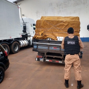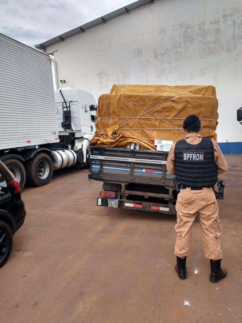 Policiais Militares do BPFRON, nesta sexta-feira (19), por volta das 9h00, na Br 163, município de Toledo, apreenderam uma camionete Ford/f1000 carregada com aproximadamente 100 caixas de cigarros de origem estrangeira.