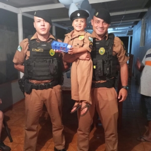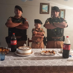 Durante o dia ele vestiu uma roupinha semelhante a farda, conheceu a estrutura da Unidade e andou de viatura. Já na parte da noite, os policiais foram convidados para cantar os parabéns junto com o aniversariante e assoprar as velinhas.