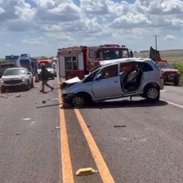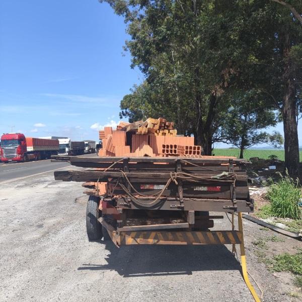 Com o impacto, o carro ficou parado no meio da rodovia e muitos tijolos ficaram espalhados pelo local. O Departamento de Estradas e Rodagem (DER) precisou limpar a via.