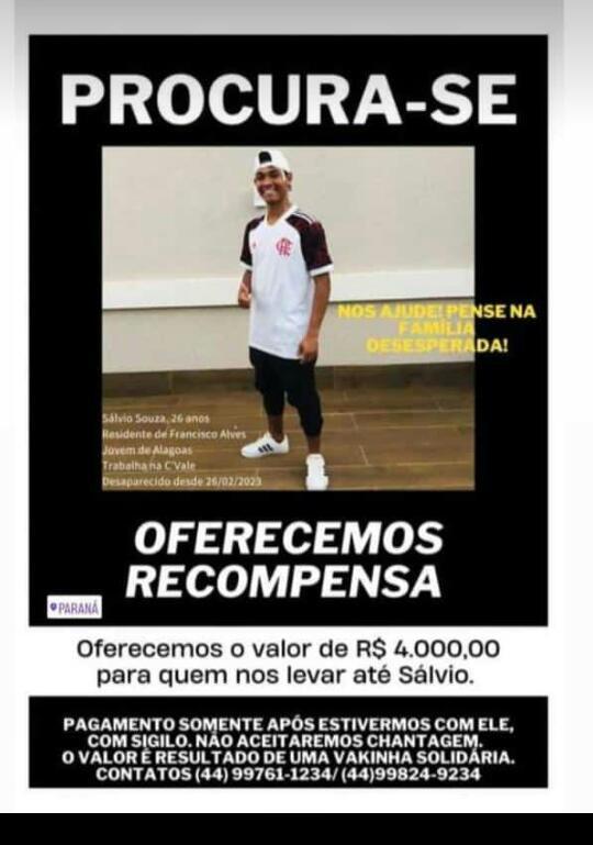 O delegado titular da Delegacia Regional de Polícia de Iporã, Felipe Martins, informou que a Polícia Civil continua com as diligências em busca de Sálvio Almeida de Souza, de 26 anos, desaparecido desde o dia 26 de fevereiro, em Francisco Alves.