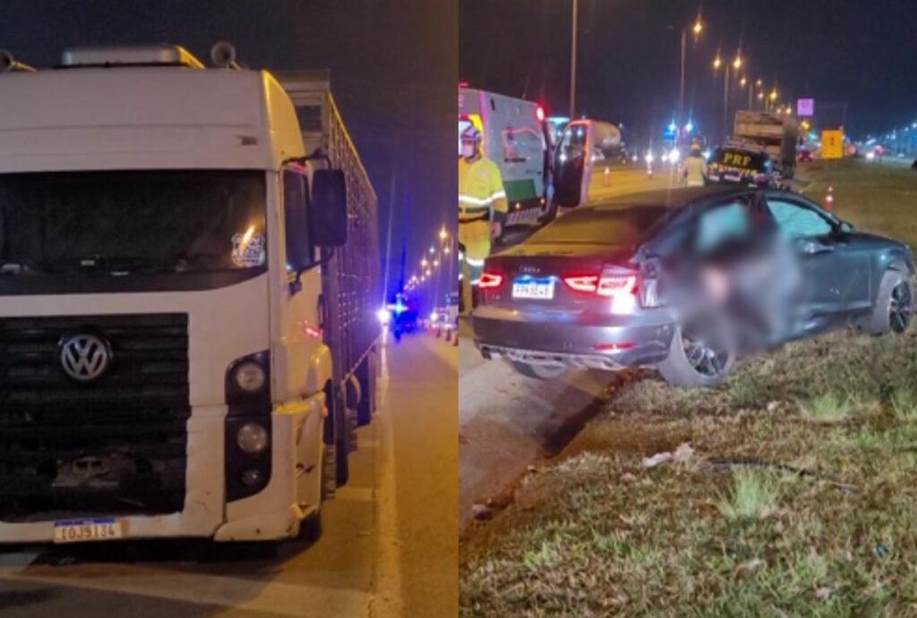 De acordo com o Corpo de Bombeiros, o acidente envolveu um carro com sete pessoas da mesma família e um caminhão. A colisão aconteceu quando o motorista do carro tentava acessar a rodovia, no sentido Curitiba, e foi atingido pelo caminhão.