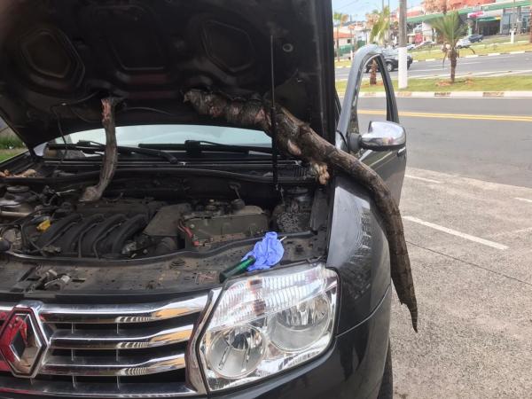 No domingo (5), viu gotas de sangue no chão e moscas ao redor. Ele então resolveu abrir o capô e encontraram uma cobra.