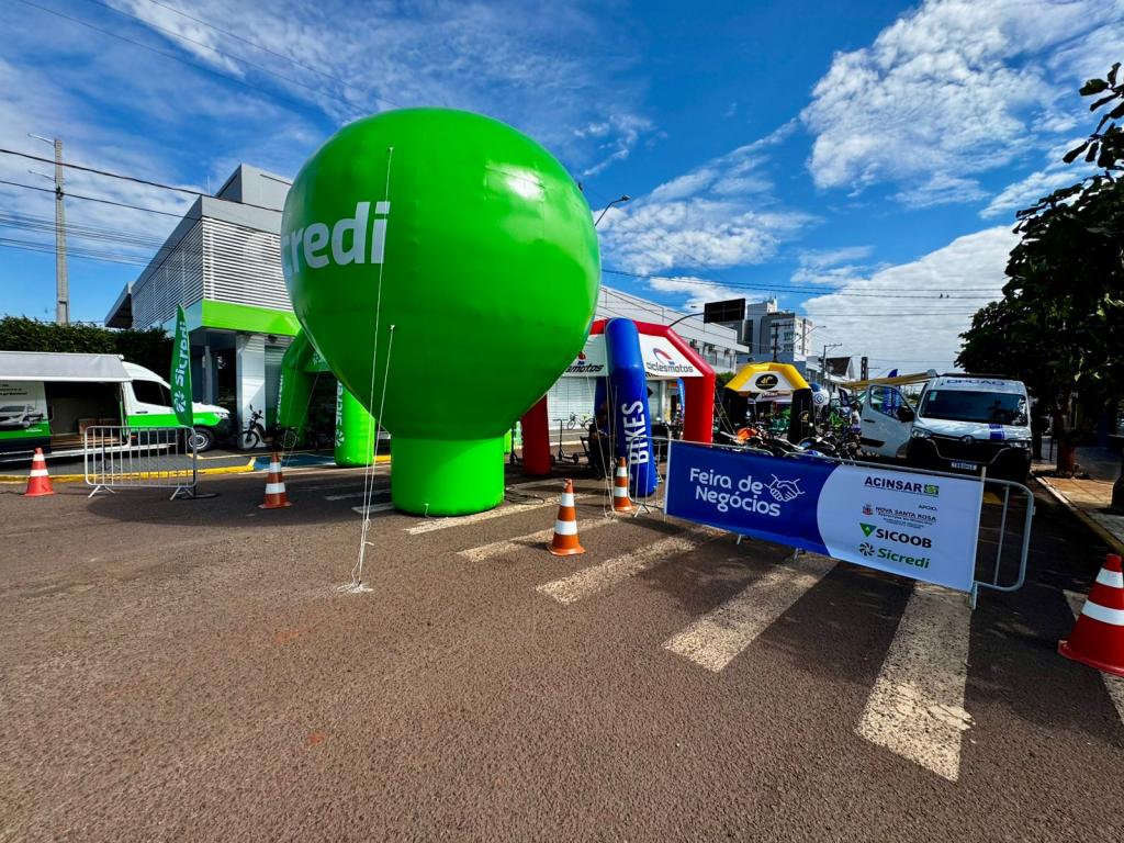 A Avenida Horizontina, em Nova Santa Rosa, está movimentada com a realização da Feira de Negócios, que segue até amanhã, sexta-feira (08). Organizada pela Associação Comercial, Industrial e Agropecuária de Nova Santa Rosa (ACINSAR), a feira acontece no trecho entre a Loja Loya e a agência da Sicredi, e reúne diversas empresas e parceiros oferecendo uma grande variedade de produtos e serviços.