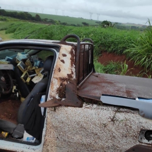 Um veículo Fiat Strada carregado com cigarros foi apreendido na manhã desta quarta-feira (14), pela equipe do BPFron, após capotar em Cascavel.