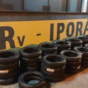 Durante a fiscalização a condutora apresentou CNH e a documentação do veículo, quando a equipe policial avistou no interior do utilitário alguns pneus de moto.