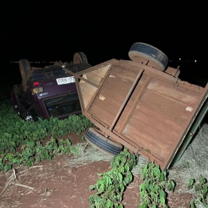 Segundo o relato do condutor, ele foi buscar feno para seu cavalo e na volta, quando seguia sentido ao trevo, um veículo na pista contrária deu luz alta e tirou a visão do motorista, que na sequencia saiu da pista e tombou o veículo com uma carretinha engatada carregada de alimento para o animal.