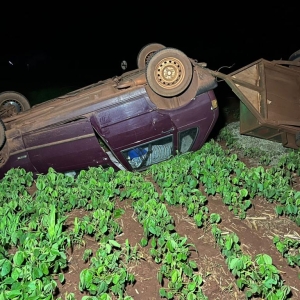 O senhor disse a reportagem que quando o carro tombou ele quebrou o vidro da porta do motorista e saiu sem ferimentos, o Fiat parou as margens da rodovia em uma lavoura de soja.