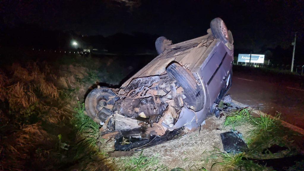 De acordo com informações apuradas no local, o carro ocupado por quatro jovens seguia em direção a Cascavel quando saiu da pista e capotou violentamente, parando com as rodas para cima.