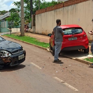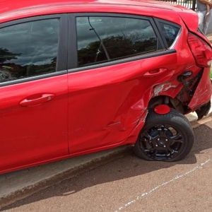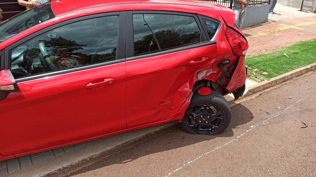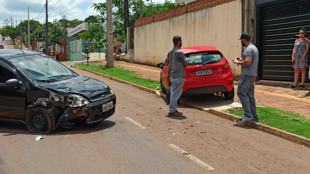 O Ford Fiesta de cor preta com placas de Toledo que era conduzido por uma mulher colidiu em outro Fiesta, só que vermelho que estava estacionado na rua Pedro Álvares Cabral no Jardim Concórdia em Toledo.