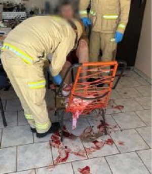 As agressões deixaram a vítima com ferimentos e intenso sangramento, chegando a deixar um rastro de sangue pelo imóvel. Familiares intervieram e conseguiram deter o agressor até a chegada das equipes da Polícia Militar e do Corpo de Bombeiros.