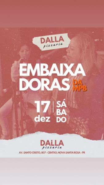 Hoje sábado tem Embaixa Doras da MPB a partir das 20h00 e no domingo, Siddi e Lianne as 20hh00