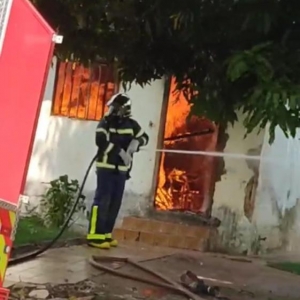 O morador da residência não estava no local no momento do incêndio.