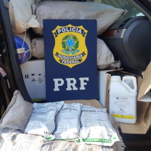 Na vistoria, os agentes encontraram cerca de meia tonelada de agrotóxico contrabandeado, avaliado em cerca de meio milhão de reais. Ainda encontraram um rádio comunicador no veículo, que é blindado.