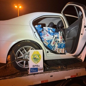 No Fusion foi encontrado em torno de 350 pacotes de cigarros contrabandeados do Paraguai, da marca Classic, o veículo com o contrabando foi encaminhado para a Delegacia de Polícia Federal em Guaíra.