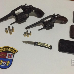 No terreno vizinho os policiais detiveram um indivíduo que tentava fugir. Ao ser perguntado disse que a arma que utilizava tinha caído ao pular o muro. Após buscas nas proximidades do muro os policiais encontraram um revólver calibre .32 com 4 munições. Da residência fora levado dois veículos, um Ford Fusion preto e uma Toyota Hilux branca, além de um celular iPhone 8.