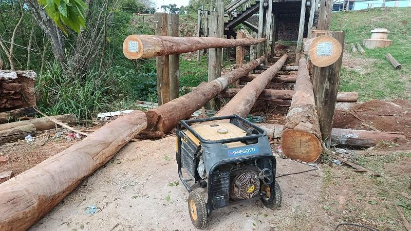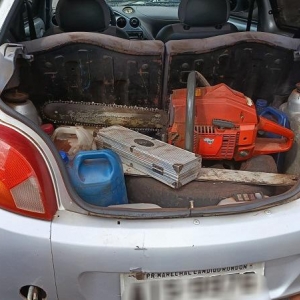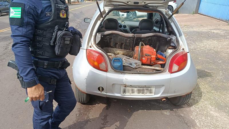 Entre os bens apreendidos está um Ford Ka com placas de Marechal Cândido Rondon, utilizado na ação criminosa. Além disso, equipamentos para o corte da madeira também foram recolhidos.