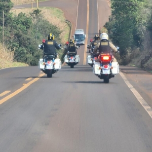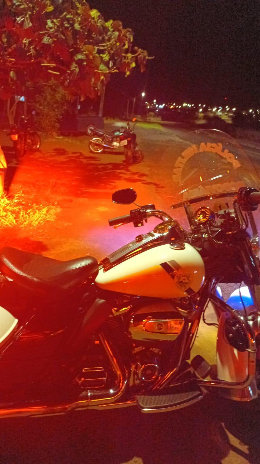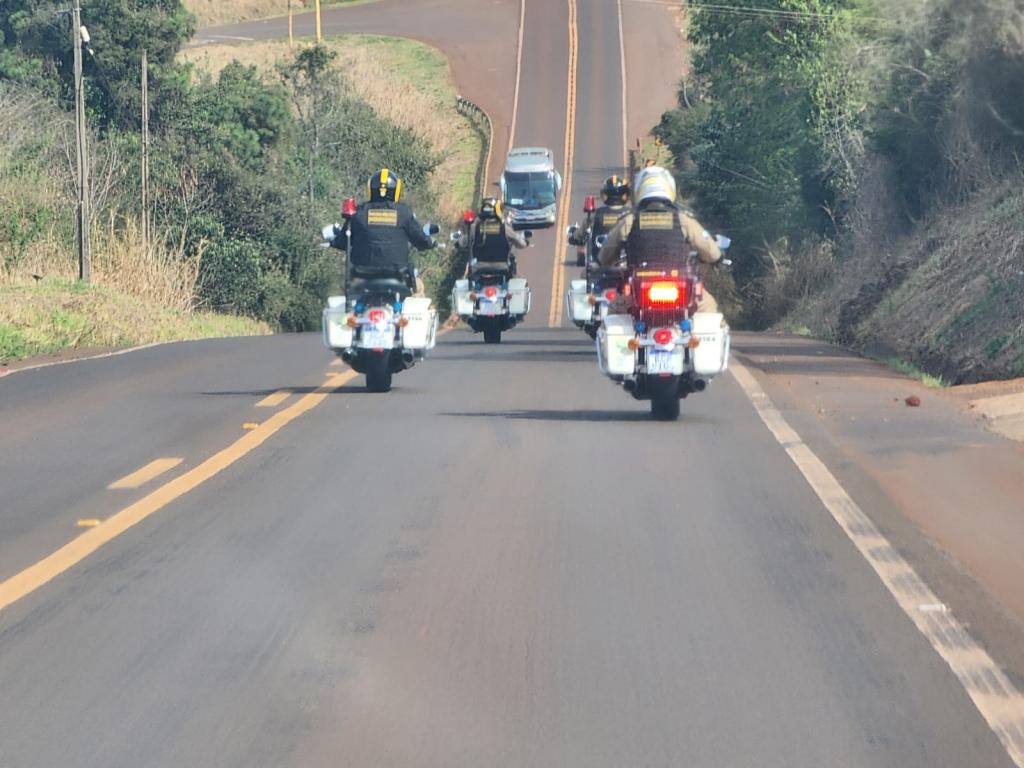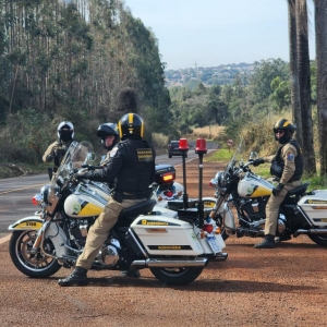 Em outra ação realizada na PR-488, em Diamante do Oeste, a equipe de motociclistas do BPRV abordou uma motocicleta Honda CG com escapamento adulterado. Durante a inspeção dos sinais identificadores do veículo, os policiais constataram adulteração, e o condutor foi preso em flagrante com base no artigo 311 do Código Penal.