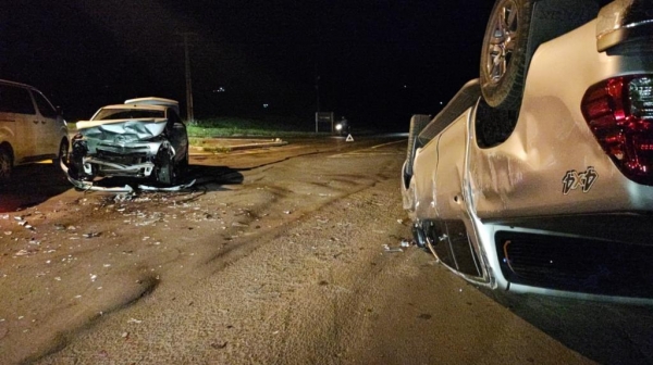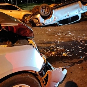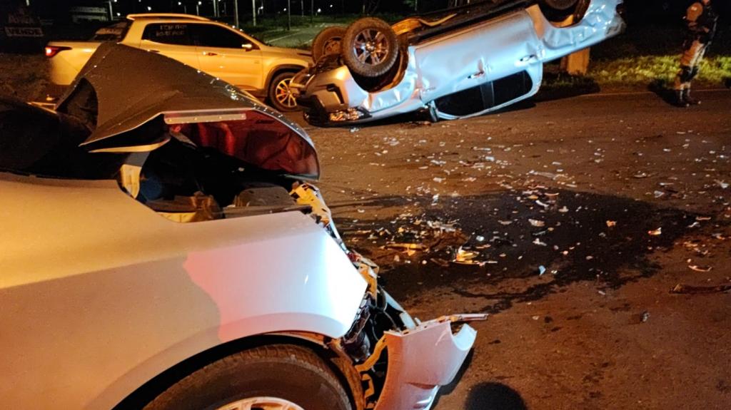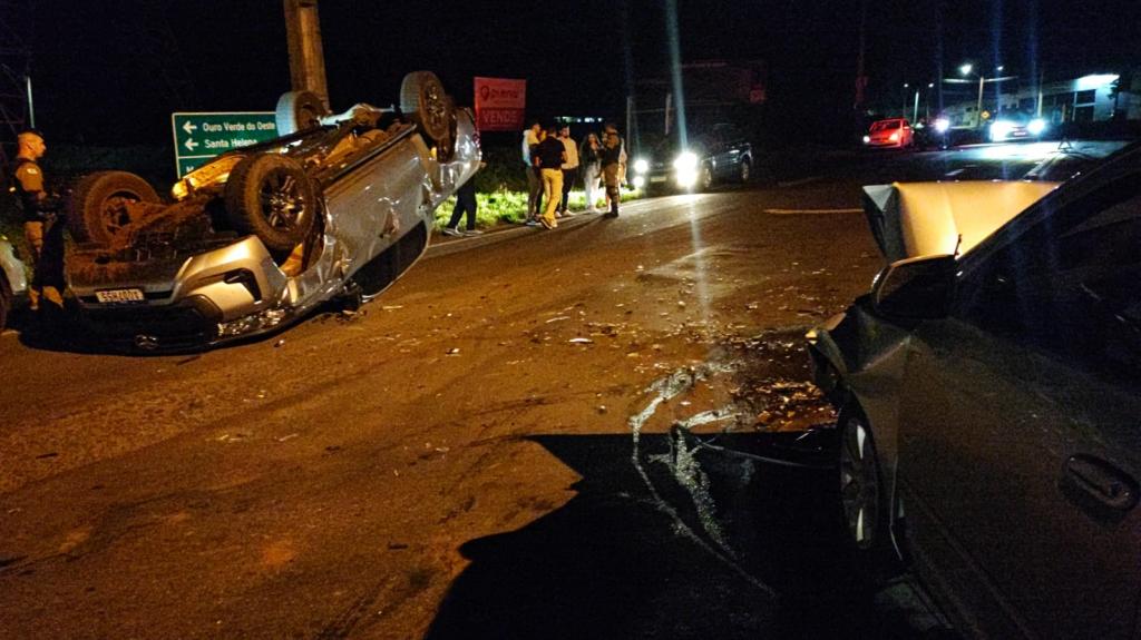 Uma forte batida entre dois carros foi registrada na noite deste sábado (04) em Toledo. O acidente aconteceu na rodovia PR-317, na saída para Ouro Verde do Oeste.