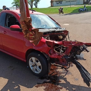 O veículo Chevrolet Montana e o Hyundai HB20, os dois com placas Mercosul se envolveram em uma forte colisão na manhã desta quinta-feira na rodovia estadual PR 182 saída para Palotina em frente ao Olinda Park Hotel em Toledo.