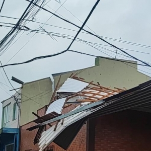 Uma das cenas mais impressionantes pôde ser vista na região da Vila Pioneiro, local onde toda a cobertura de aluzinco de um prédio foi destruída.