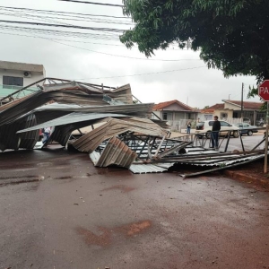 A situação ocorreu nas proximidades do cruzamento da Rua dos Pioneiros com a Rua dos Bandeirantes. Toda a parte metálica e ferragens da cobertura foi arremessada e caiu no meio da via, interditando o trânsito no local.