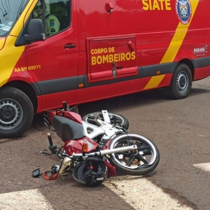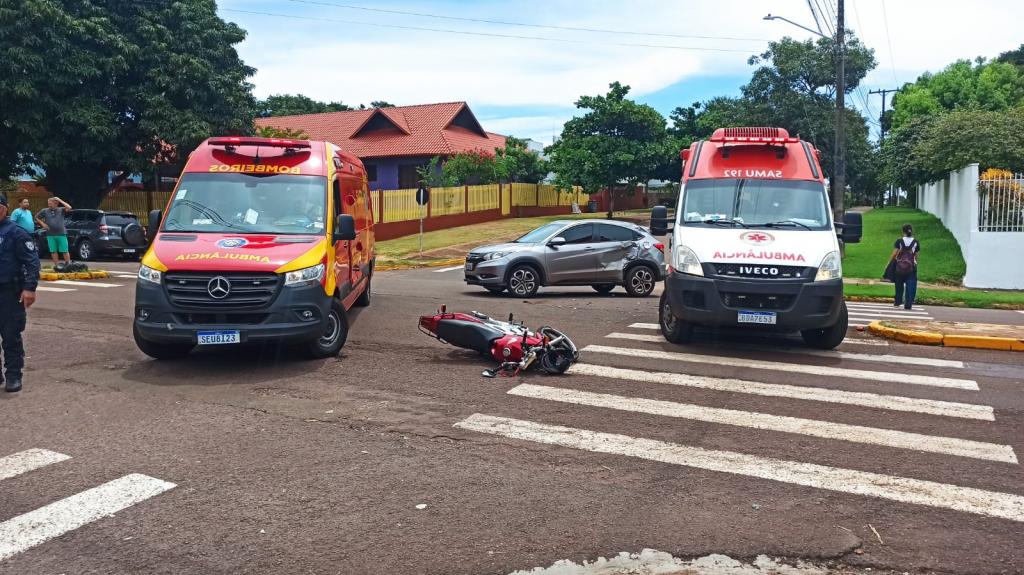 A colisão envolveu uma motocicleta Honda CBX 250 Twister, e um veículo Honda HR-V. De acordo com informações obtidas no local, a batida ocorreu quando a moto trafegava pela Rua Guarani e o automóvel seguia pela Rua Terra Roxa.