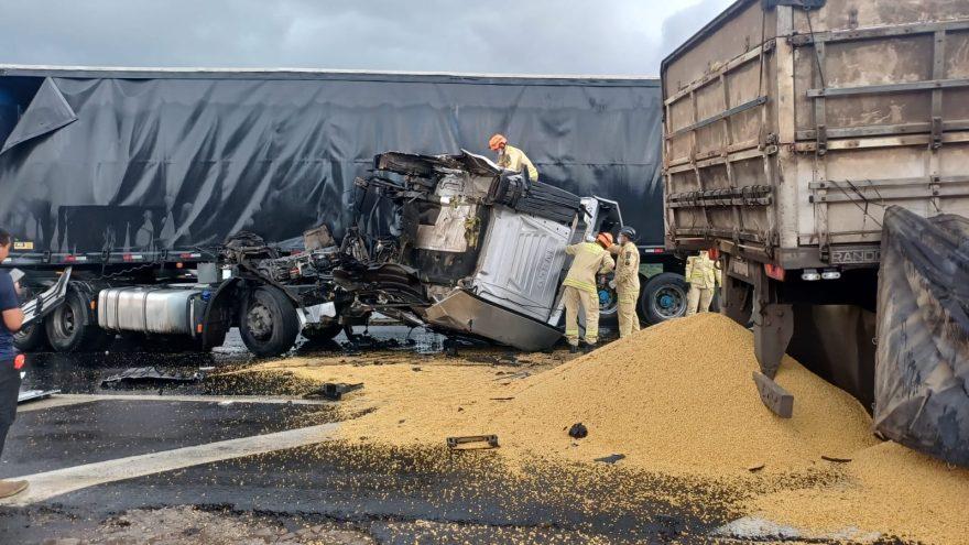 No início da tarde desta quarta-feira (1º), um acidente envolvendo dois caminhões resultou na interdição total da BR-376, em Ponta Grossa, no sentido Curitiba. Segundo as primeiras informações apuradas, um dos caminhões teria perdido o controle, formando um “L” na pista e colidindo com o outro veículo de carga. O impacto provocou a obstrução completa da rodovia no sentido da capital paranaense.