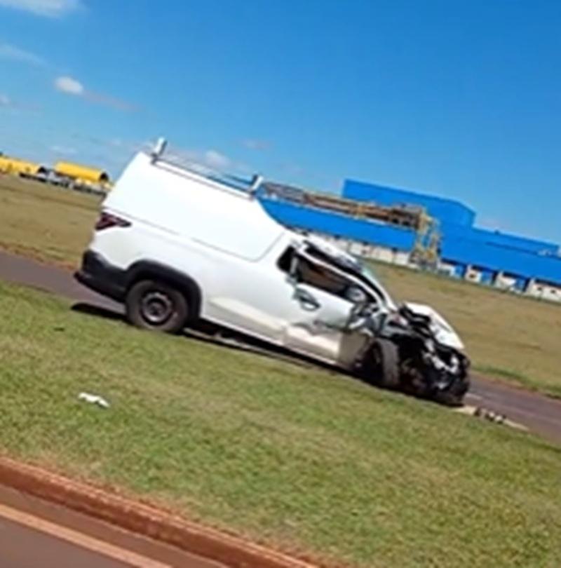 Uma forte colisão ocorreu no início da tarde desta segunda-feira (22), nas proximidades do frigorífico da C.Vale, em Palotina. O acidente envolveu uma Fiat Strada com baú acoplado e uma carreta. Populares que passaram pelo sinistro, registraram imagens.