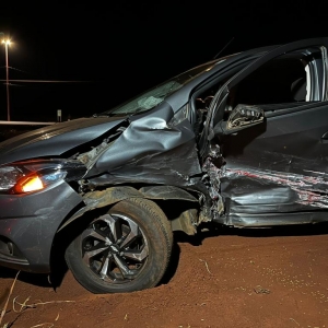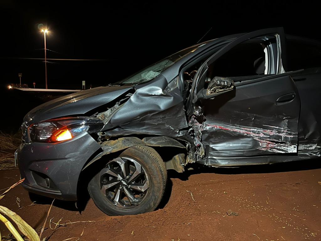 Noite de acidentes na região. E desta vez, uma forte colisão entre dois veículos foi registrada no trevo de Maripá, na noite deste sábado (06), instantes após o acidente em Nova Santa Rosa.