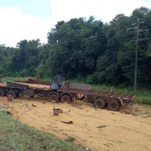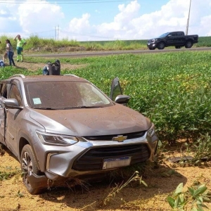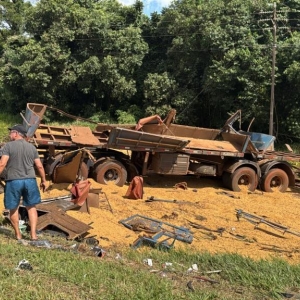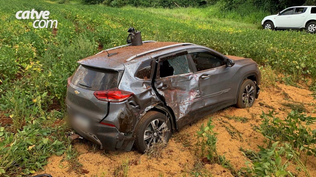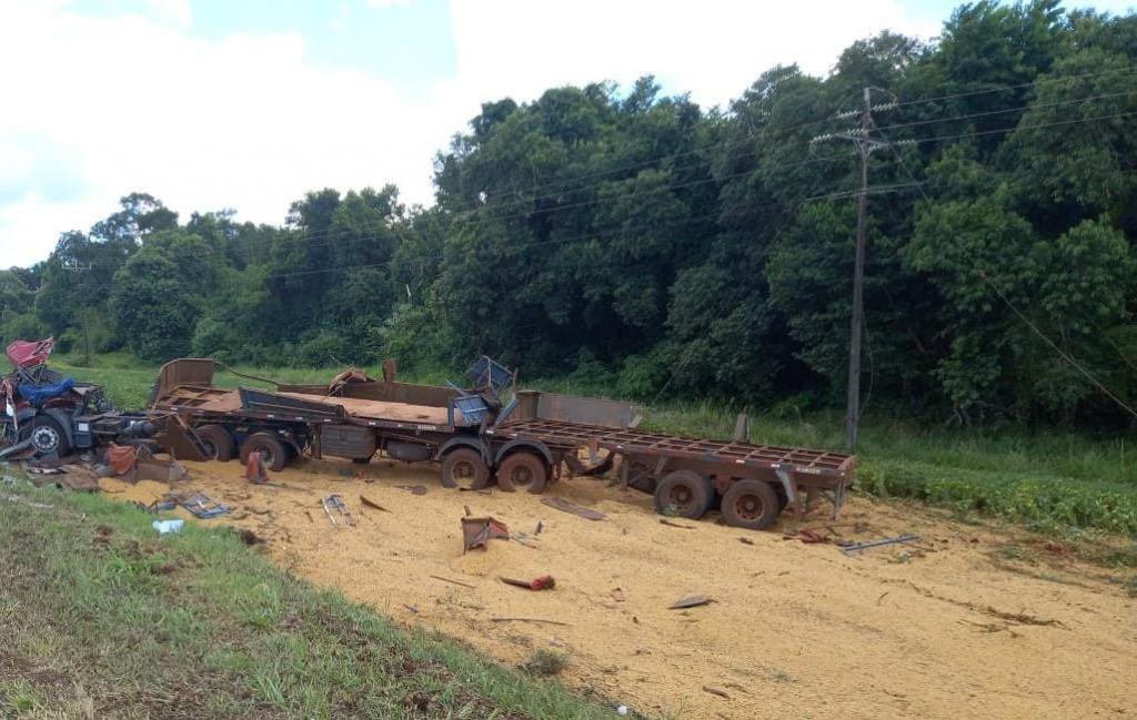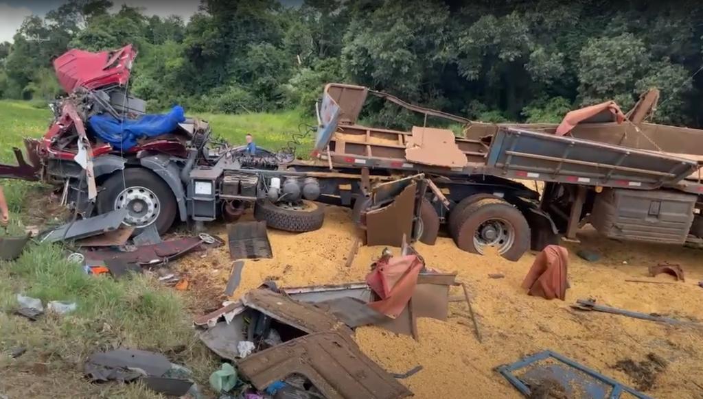 A condutora do carro teria realizado uma ultrapassagem e, ao voltar para a pista, entrou na frente do caminhão, causando a colisão. O impacto foi tão forte que o veículo de carga saiu da pista e tombou, parando em meio à plantação ao lado da via, completamente destruído, e derramando a carga de soja às margens da rodovia.
