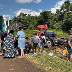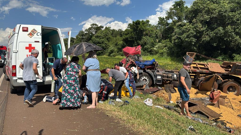 Na tarde desta quinta-feira (16), um grave acidente envolvendo uma carreta e um Chevrolet Tracker deixou cinco pessoas feridas, uma em estado grave – o condutor da carreta - na altura do km 619 da BR-277, próximo à praça de pedágio de Céu Azul, na região oeste.