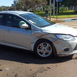 Um acidente entre dois carros foi registrado no início da tarde desta sexta-feira nas proximidades da prefeitura de Toledo.