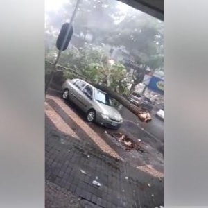 Nelas, é possível ver que uma árvore que fica no lado Paraguaio acabou caindo e deixou o sentido Ciudad del Este para Foz do Iguaçu bloqueado.